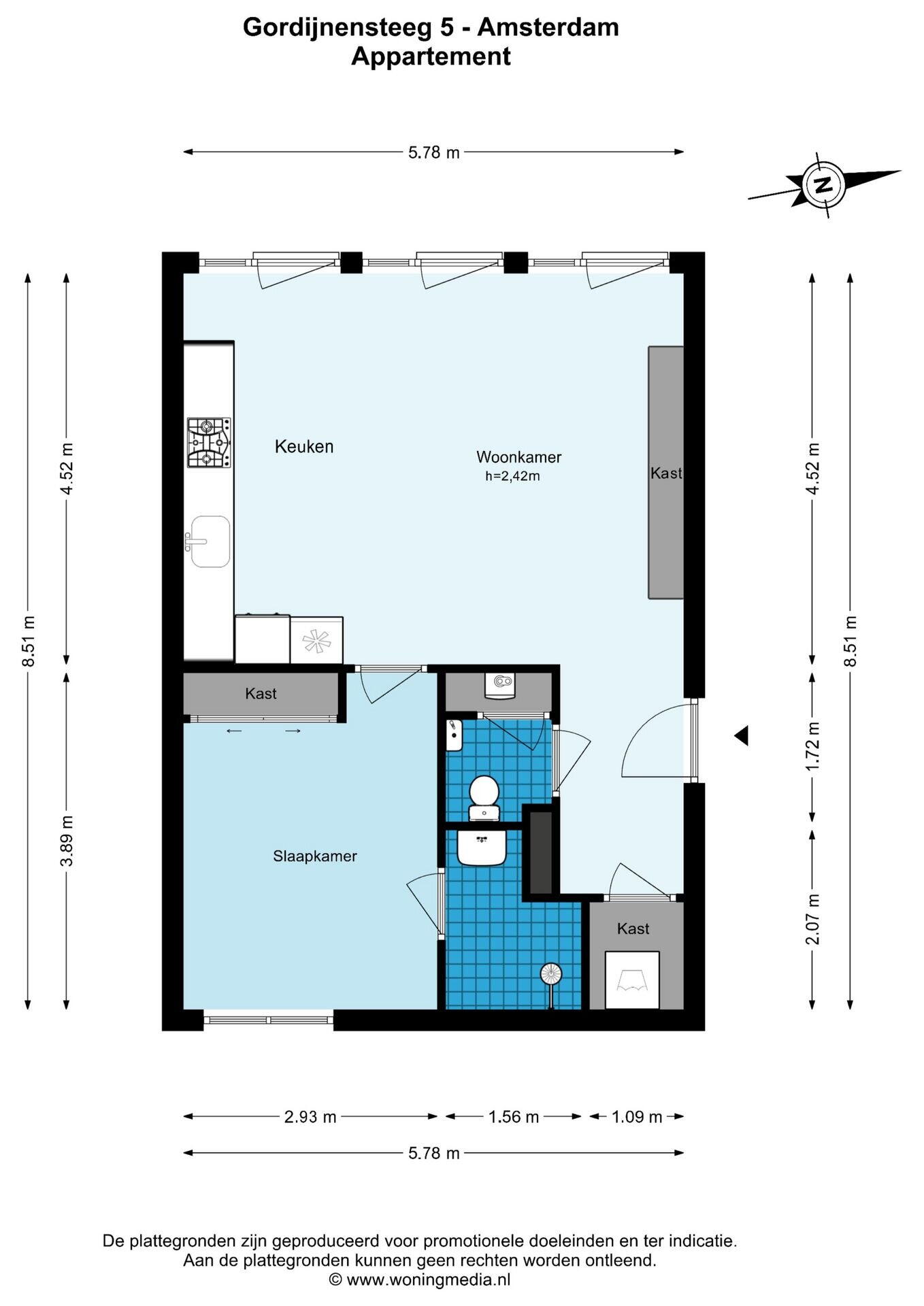 Deze woning is gemeten volgens de Meetinstructie. De Meetinstructie is gebaseerd op de NEN2580. De Meetinstructie is bedoeld om een meer eenduidige manier van meten toe te passen voor het geven van een indicatie van de gebruiksoppervlakte. De Meetinstructie sluit verschillen in meetuitkomsten niet volledig uit, door bijvoorbeeld interpretatieverschillen, afrondingen of beperkingen bij het uitvoeren van de meting. Hoewel wij de woning met veel zorg hebben opgemeten kan het zijn dat er verschillen zijn in de afmetingen. Noch verkoper noch de makelaar accepteert enige aansprakelijkheid voor deze verschillen. De maatvoeringen worden door ons gezien als zuiver indicatief. Indien de exacte maatvoering voor u van belang is, raden wij u aan de maten zelf te (laten) meten. In dit kader merken wij op dat het Ministerie van VROM bij de basisregistraties een afwijking van 15% toelaatbaar acht. Wij gaan uit van eenzelfde toelaatbaar verschil. Hierbij zijn geen interpretatieverschillen in meegenomen. Deze kunnen leiden tot een extra verschil. Lees de volledige omschrijving